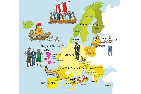 A prognosis by Niall Ferguson, Harvard professor of history: the UK and Ireland reunited, plus a Nordic League; both entities outside the “United States of Europe” under German leadership (and Vienna as its capital).